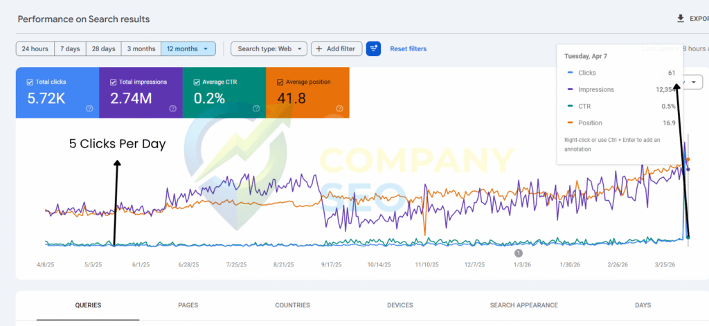 The core problem: 2,400 pages of content with no strategy, no structure, and no technical foundation. Google didn’t trust the site — and the traffic numbers proved it.